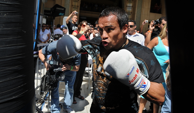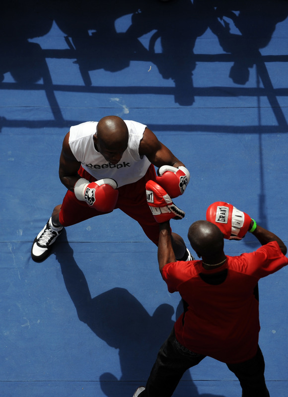 Former pound for pound boxing king Floyd Mayweather Jr. and Mexico’s Numero Uno Juan Manuel Marquez had an open workout in the heart of Hollywood, CA on September 14. The workout was right in front of the Kodak Theater. The fight will be shown on HBO Pay Per View and selected movie theaters nationwide. Mayweather vs Marquez takes place on September 19,2009 in Las Vegas, Nevada.
